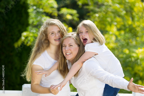 © tab62, Fototapeta premium Mother giving younger daughter piggy back ride
