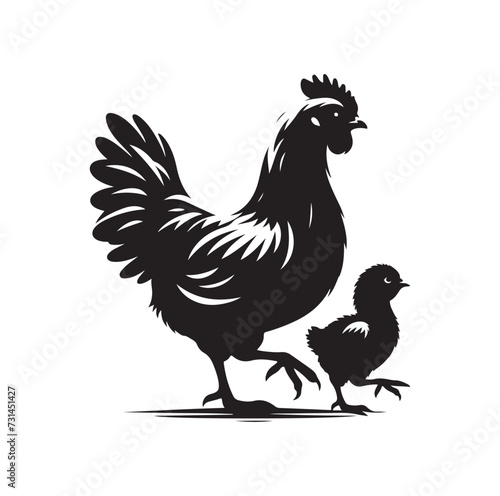 © MSTMIM, Fototapeta premium Mother Hen with Her Chicks silhouette vector