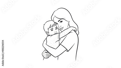 © Gandor, Obraz premium Mother Hugging Child Tenderly - Simple Line Art Illustration
