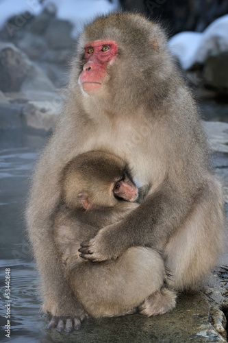 © andreanita, Naklejka premium Mother Japanese Macaque with young in her arms.