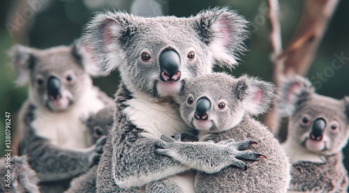 Fototapeta premium Mother Koala Cradling Her Joey in a Eucalyptus Forest