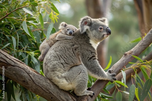 © PAPPUS_STORE, Fototapeta premium Mother koala with baby on her back