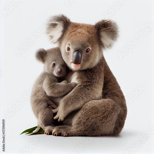 © LAYHONG, Naklejka premium Mother koala with her baby. Isolated on white background. Generative AI