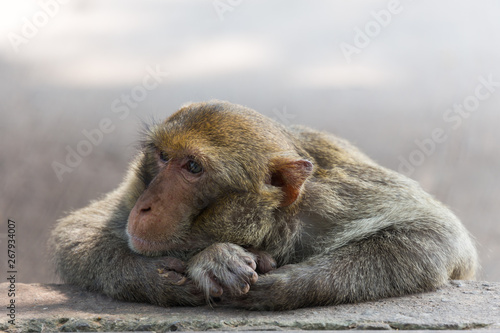 © pandaclub23, Obraz premium mother monkey on the side walk