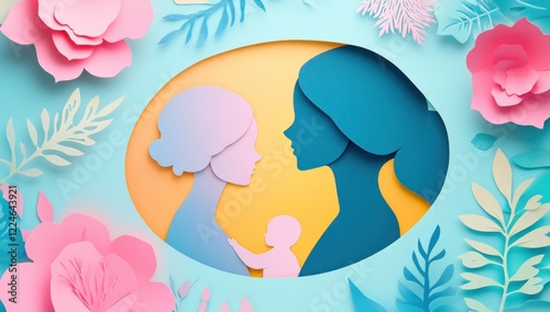 © heri, Naklejka premium Mother's Day: A Celebration of Maternal Love, Paper Art Floral Design