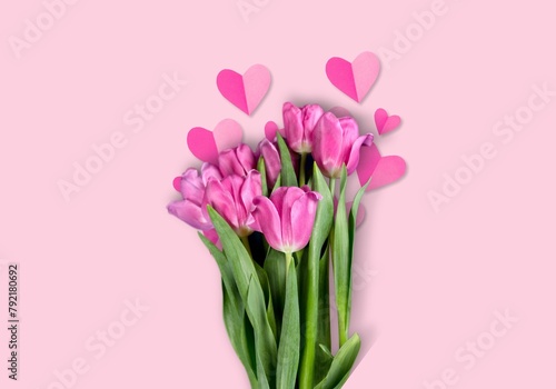 Fototapeta premium Mother's Day, fresh flowers and paper hearts