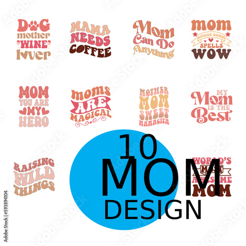 © Mahmudar, Fototapeta premium Mother's Day Retro Mon Typographic Bundle. Colorful Typography on White Background For Print on Demand Business.