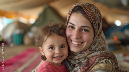 © Pompozzi, Obraz premium Mother’s Embrace. Joyful Moments with a Toddler in Traditional Wear