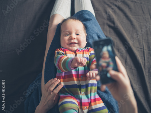 © LoloStock, Obraz premium Mother taking photo of her baby