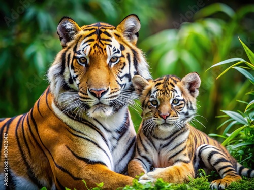 © Man888, Obraz premium Mother Tiger Nurturing Her Cub Showcasing Strong Maternal Instincts and Protective Behavior in Nature