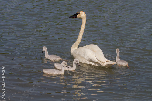 Fototapeta premium Mother trumpeter swan with her signets