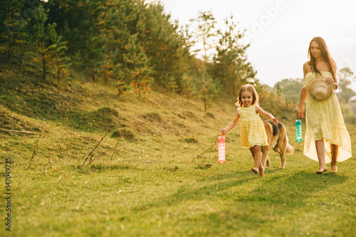 © jul14ka, Obraz premium mother walk with his little daughter, and their dog