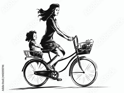 Obraz premium Mother With Bike In The Style Of Dynamic Line Work