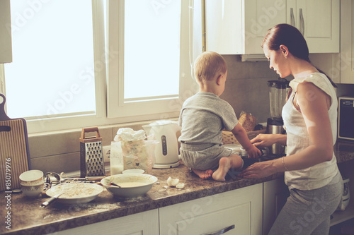© Alena Ozerova, Fototapeta premium Mother with child cooking together
