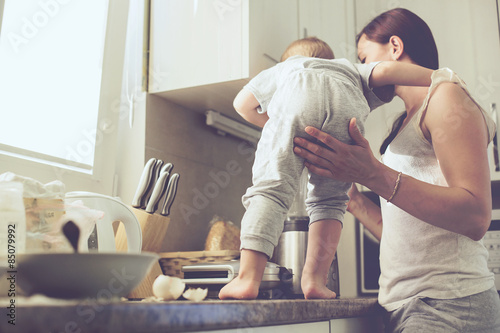 © Alena Ozerova, Fototapeta premium Mother with child cooking together