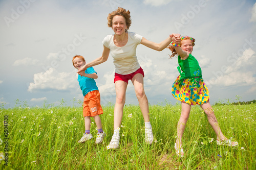 Fototapeta premium mother with children goes on field
