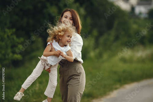 Fototapeta premium Mother with daughter playing in a summer field