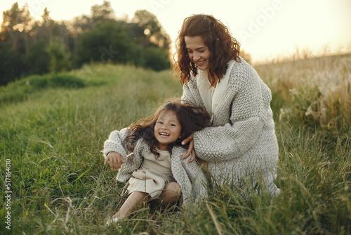Fototapeta premium Mother with daughter playing in a summer field