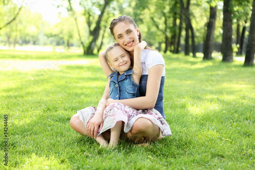 © Sergey Nivens, Fototapeta premium Mother with her daughter outside