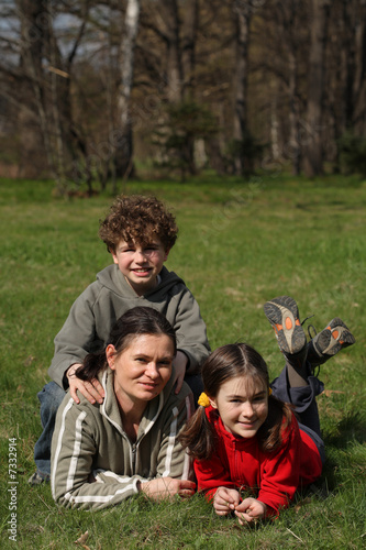 © Jacek Chabraszewski, Fototapeta premium Mother with kids resting in park