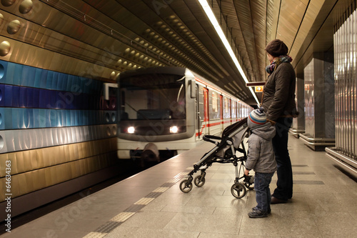 © Arkady Chubykin, Fototapeta premium Mother with son at subway station