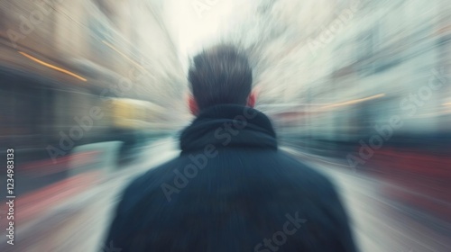 © Generative AI, Obraz premium Motion blur effect of a mysterious man walking alone in a busy city street : Generative AI