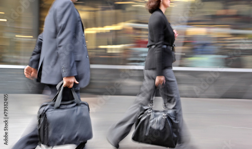 © bluraz, Obraz premium motion blurred business people walking on the street