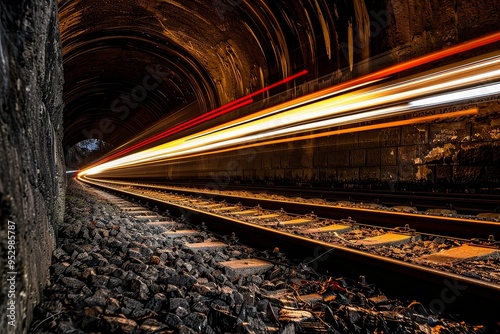 © Morphart, Obraz premium Motion Blurred Train Exit Tunnel