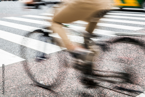 © tarapatta, Obraz premium Motion blurry image man riding bicycle on the road