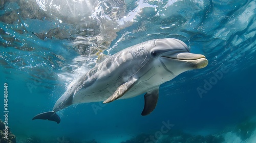 Obraz premium motion Lone dolphin caught mid air with expressive