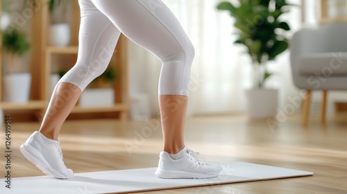 © tuiphotoengineer, Fototapeta premium Motivated and focused Asian woman performing lunges on a yoga mat in a bright peaceful home environment with plants and decor demonstrating discipline strength and a healthy lifestyle
