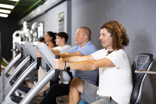 © JackF, Obraz premium Motivated man leading healthy active lifestyle doing cardio workout on exercise bike in gym..