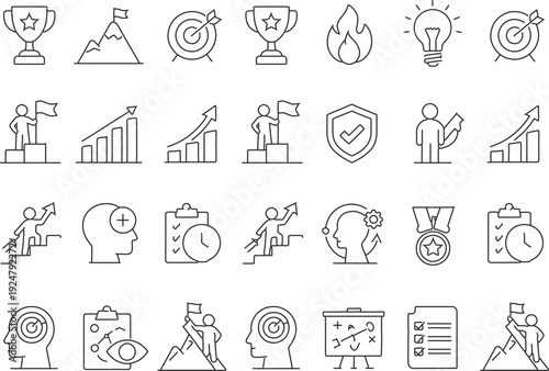 © rasel1999, Fototapeta premium Motivation icon set in grid arrangement vector illustration.