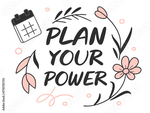 Obraz premium Motivational Illustration Featuring Calendar and Floral Elements with the Phrase Plan Your Power