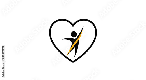 © Santa, Fototapeta premium Motivational logo depicting a stylized person with one arm raised in triumph placed inside a black heart outline for health.