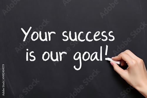 Fototapeta premium Motivational message on a blackboard emphasizing that your success is our goal in business and in personal development.