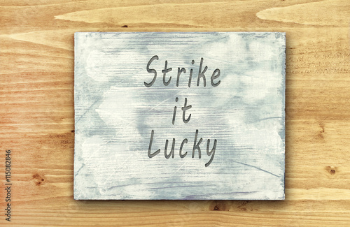 Obraz premium Motivational phrase note, Strike It Lucky sign