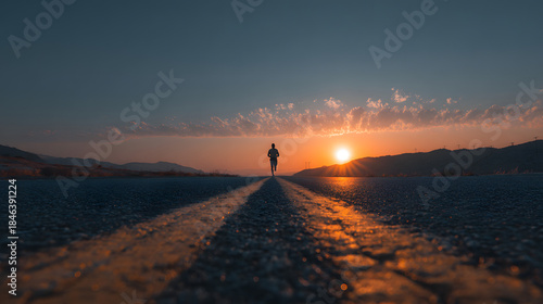 © Daniel, Obraz premium Motivational runner heading toward 2026 goal on sunset road symbolizing new beginnings
