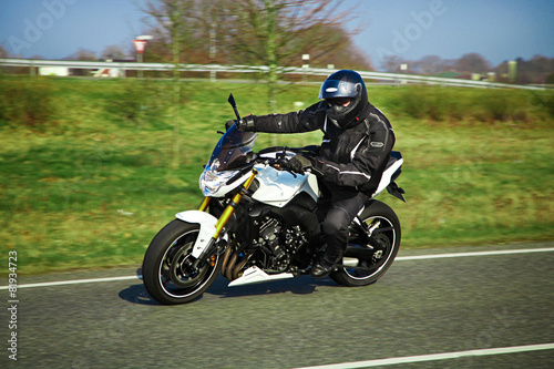 © closeupimages, Fototapeta premium Motocyklista rowerzysta na drodze