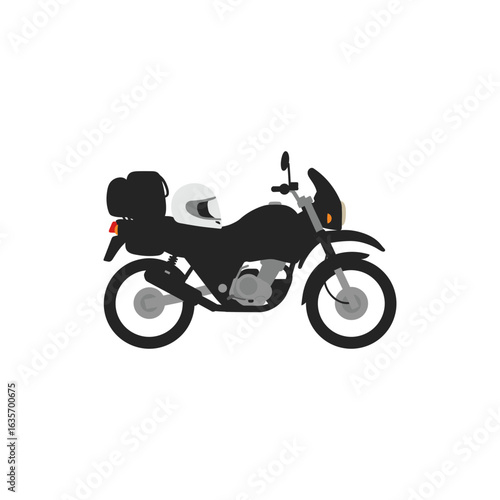 Fototapeta premium Motorbike with Backpack and Helmet Colorful Black Line Icon No White