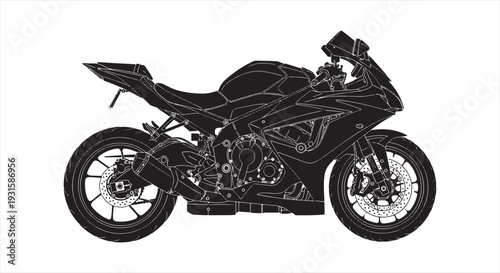 © RNB DESIGN, Obraz premium Motorcycle Blueprint – Classic and Vintage Bike CAD Technical Drawing