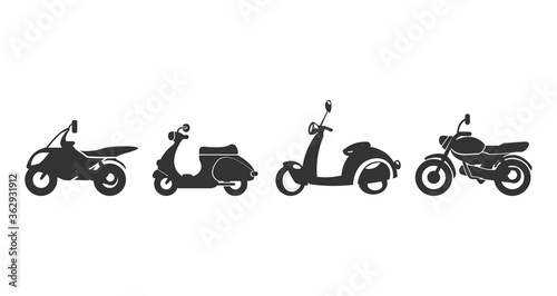 Naklejka premium motorcycle icon set. Sportbike, scooter icon