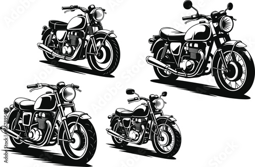 Obraz premium Motorcycle Illustrations Classic Bike Designs Black and White