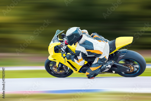 © toa555, Fototapeta premium Motorcycle leaning into a fast corner on highway