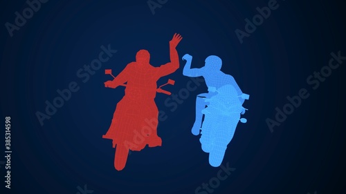 Obraz premium Motorcycle People Arguing Wireframe Glowing 3D Rendering