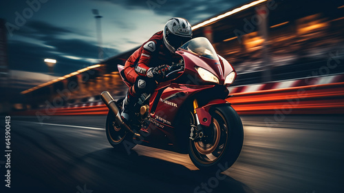 © EwaStudio, Obraz premium Motorcycle Racer Takes the Sharp Turn