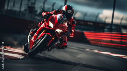 © EwaStudio, Obraz premium Motorcycle Racer Takes the Sharp Turn