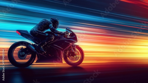 © fekong, Fototapeta premium Motorcycle rider silhouette. street motorbike racing laser background