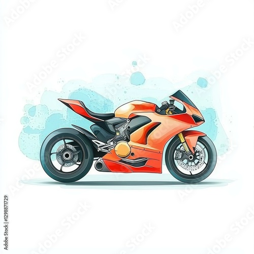 © Prim2513, Obraz premium motorcycle watercolor concept. Vibrant orange motorcycle illustration with a dynamic background.