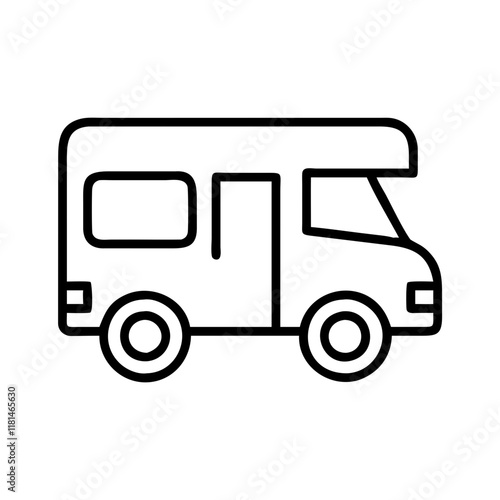 © Waliul, Obraz premium motorhome icon, vehicle line art, vehicle vector - simple black line art icon of motorhome perfect for logos, and vehicle-themed designs.